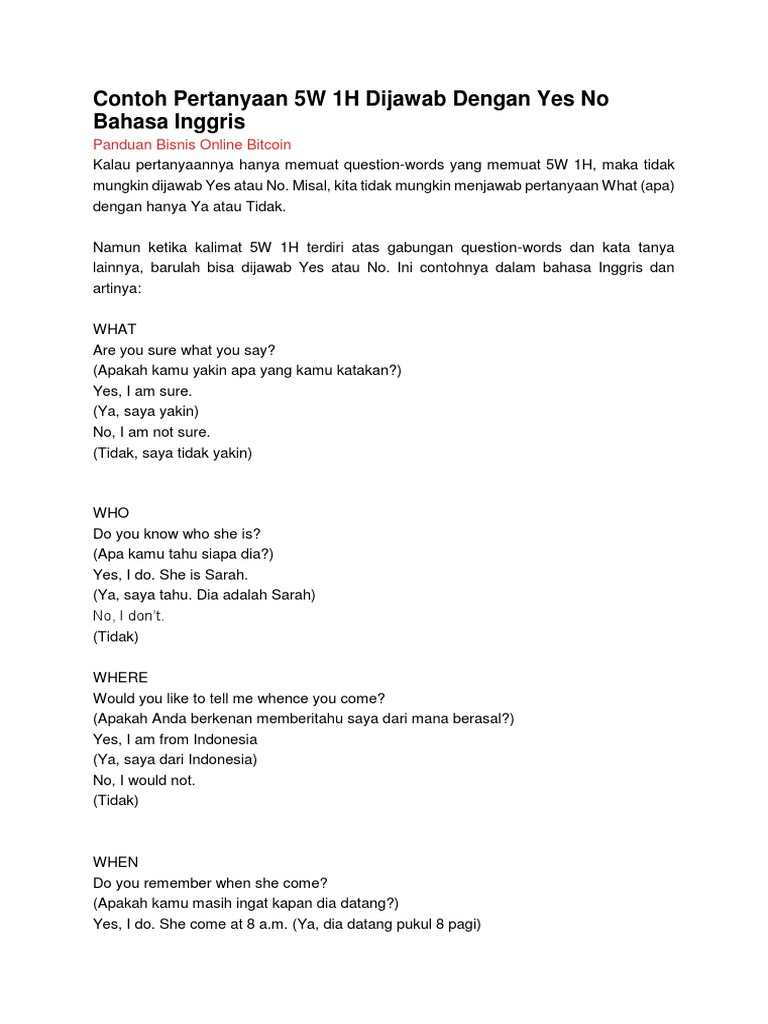 Kata tanya dalam bahasa inggris dan jawabannya. (+) she is studying english language now. Dia perempuan belajar bahasa inggris sekarang. Contoh kalimat tanya bahasa inggris menggunakan what dan jawabannya you can click this video to learn english: Sebenarnya jawabannya cukup simpel, agar sebuah produk, jasa, atau event bisa dikenal oleh khalayak ramai. Pembuatan kalimat tanya kelihatannya mudah, tetapi ada berbagai aturan yang bisa digunakan agar kalimat tanya bisa dipahami dan tentunya tidak salah dalam segi grammatikalnya. Dan pada kesempatan kali ini kita berikan 100 kalimat bahasa inggris yang disertai terjemahannya untuk mempermudah sobat ec untuk mempelajari nya. Dan tentunya dalam bahasa inggris pun ada banyak sekali jenis kalimat tanya yang perlu kita gunakan. Sedangkan apabila jawabannya 'tidak' maka kita dapat menggunakan no, she do not/ no, he do not. What are you doing here, gus? Soal bahasa inggris direct and indirect speech lengkap beserta pembahasannya 1. Perintah (stay) berubah menjadi to stay dalam pola affirmative, here berubah menjadi there. Menurut kamus besar bahasa indonesia, kata merupakan suatu unsur bahasa yang diucapkan atau dituliskan serta merupakan perwujudan kesatuan pemikiran dan perasaan yang dapat digunakan.